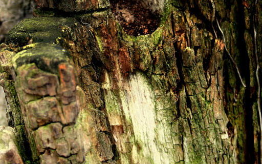 Met foto's laat hij u de miniwerelden zien die zijn verborgen in natuurlijk hout.